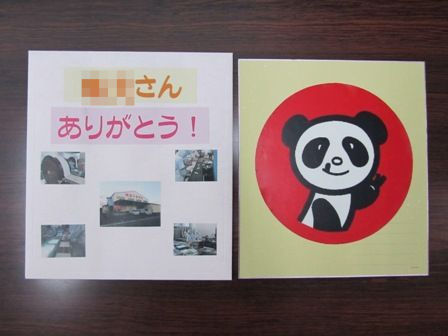 ← 色紙の裏にドーンとパンダの大きな画像を貼らせてもらいました