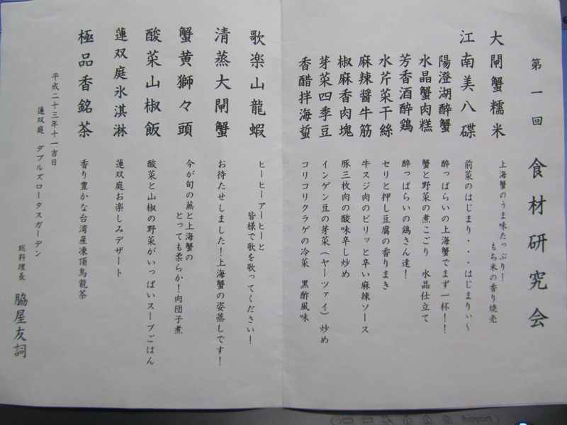 昨日は八仙閣の2階「蓮双庭」で行われた「第一回 食材研究会」に出席してきました