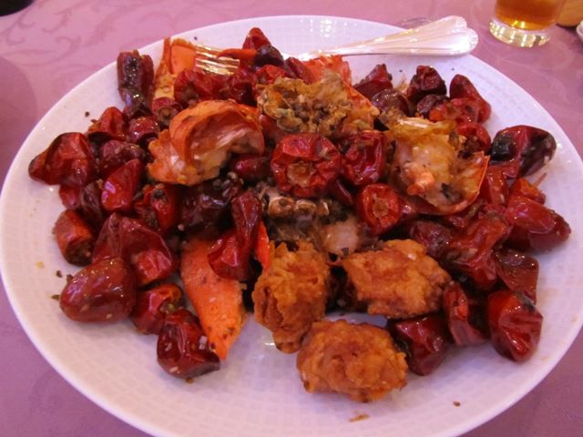 ← 次に出された料理がこちら。赤いのはすべて唐辛子です