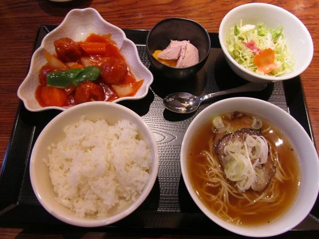 ← 麺と料理一品が選べる「蓮双庭セット」にしました。女性には嬉しい、サラダとデザート付きです