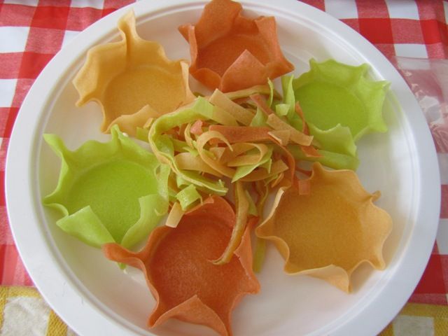 中にいろいろな料理を入れて「食べられる器」として使うと、彩りもキレイで料理が更に映えますよ〜