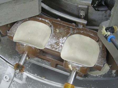 ← バットの中に4個ずつ並べられていきます。ひとつのバットに、4個×15列=60個入ります。