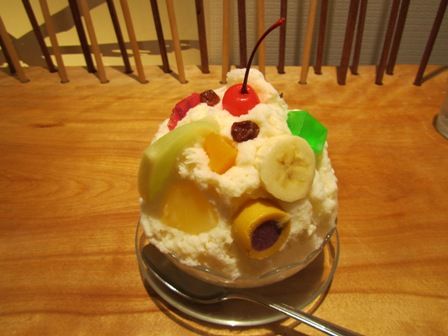 氷はフワフワで、果物やドライフルーツやゼリーが氷の側面に貼り付けてあり、とっても美味しかったです