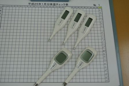 ← インフルエンザの社内での感染を少しでも防ぐために、今日から毎日出社したら検温をしていただくことにしました。