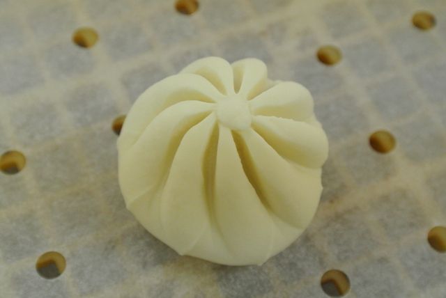 ← こちらが機械で取ったばかりの「ミニ包子」。まだ発酵していない状態です。