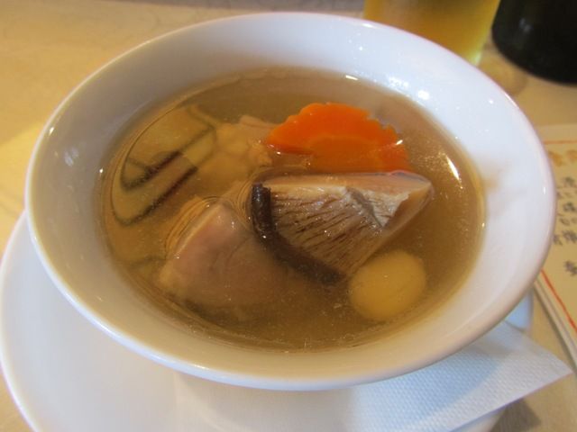 ← こちらは「長州黒柏の薬膳スープ」です。「長州黒かしわ」は、山口県島根県の地鶏の最高品種だそうです
