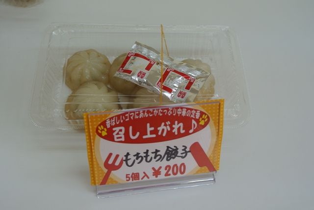 ← 今回は、先日試作した「もちもち餃子(仮称)」のお客様の反応が知りたくて、5個200円で試食販売してみました。