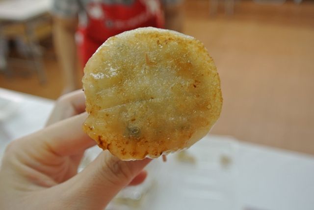 ← こちらの「もちもち餃子(仮称)」はまだ商品化はしていませんが、餃子と同じように蒸し焼きにすれば、外側の生地はモチモチ、底はカリッとして、とっても美味しいんです