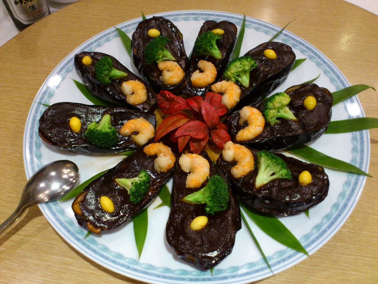 ↑ こちらは、半分に切った茄子の上に味噌がのった料理です。
