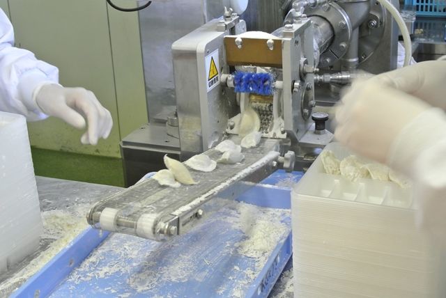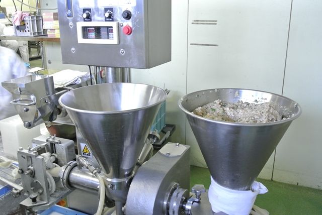 こちらの皮と水餃子の具を、水餃子を製造する機械にセットします。(↓)