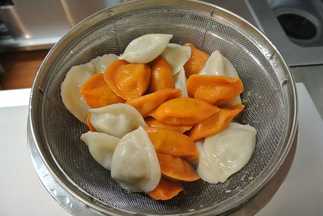 こちらが茹でた「水餃子」と「ピリ辛水餃子」。(↓)