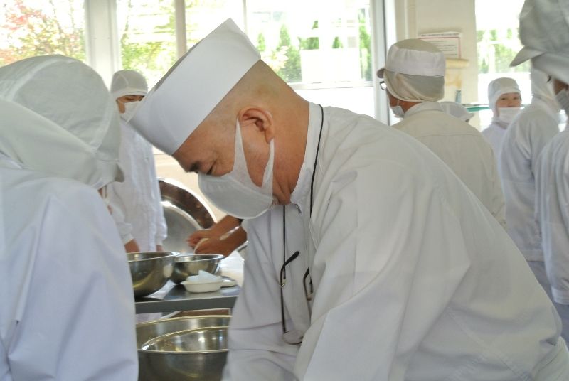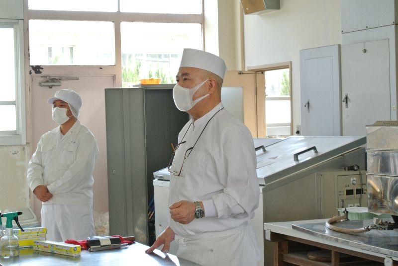 ↑ なんと常務が、高校生40人に対して肉まんの作り方の技術指導を行ってきました