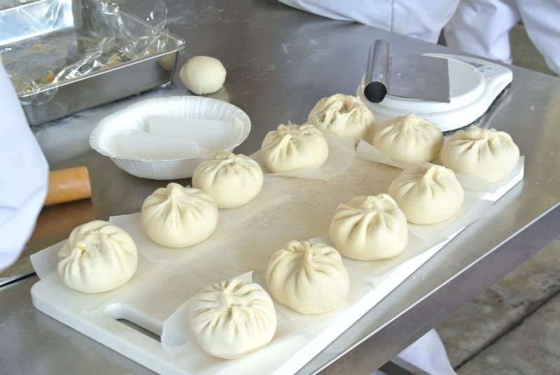 実習では、肉まんの生地を練るところから、具を包み、蒸して試食するまでを2時間で行います。