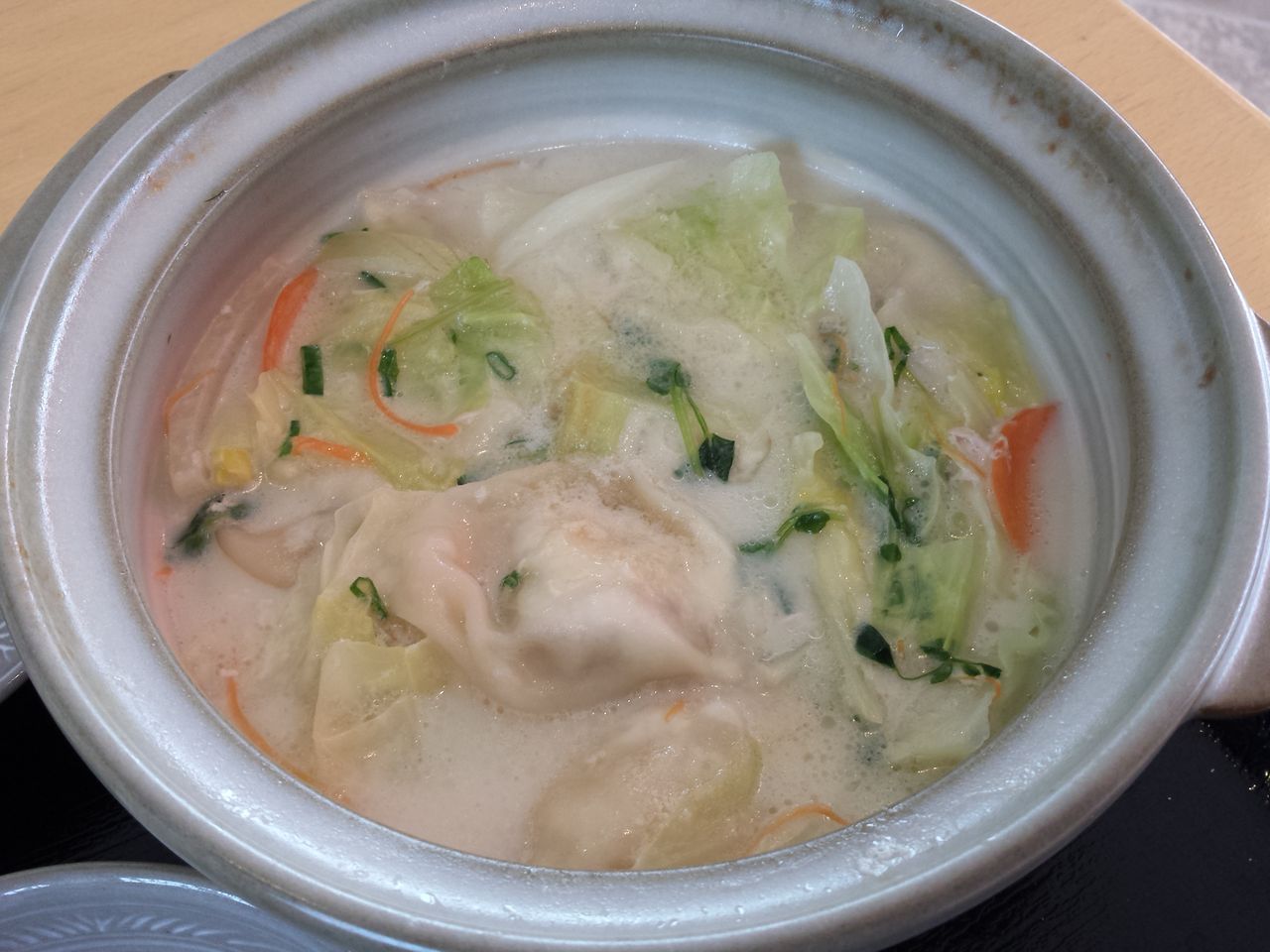 そのおさつポークを使った「コラーゲンスープの水餃子(白湯スープ)」を注文しました。