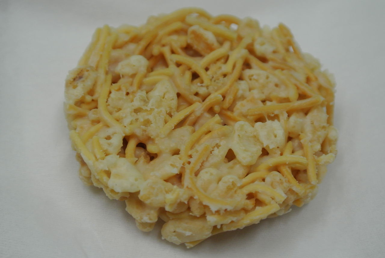 ↑ 皿うどんのパリパリ麺に、チョコレートがコーティングされてありました。