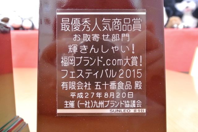 ↑ トロフィーにはちゃんと「最優秀人気商品賞」「五十番食品殿」と書かれてありました。