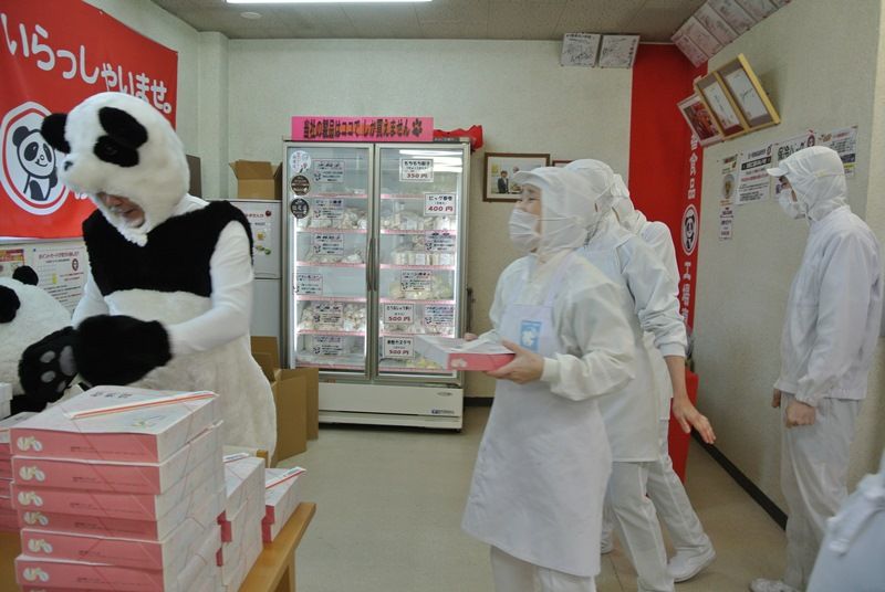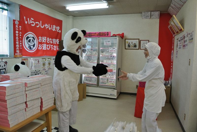 ↑ 後ろのパンダ店長と常務パンダ、五十番食品にパンダが2匹です