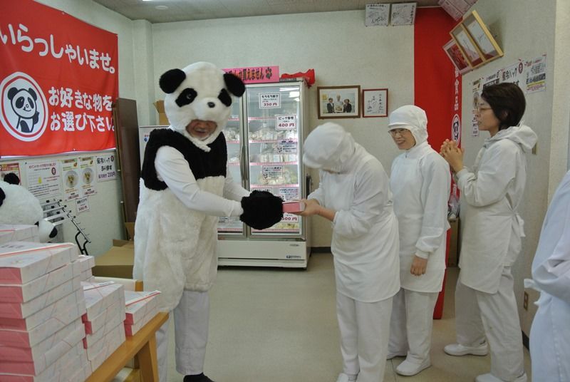 社員のOさんの発案でパンダの着ぐるみでお弁当を配ってもらうことにしました