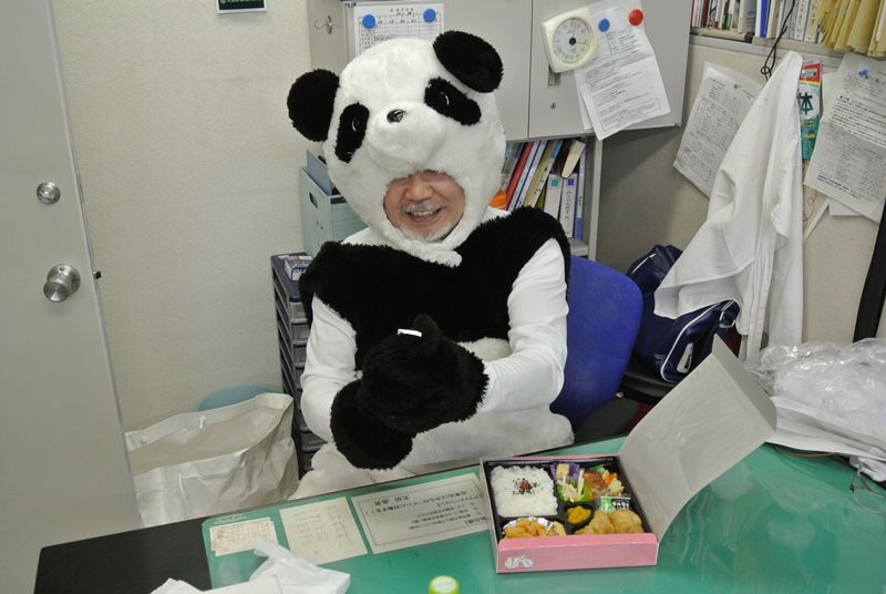 仕事納めの日には毎年スタッフの皆さんにお昼のお弁当を用意していますが、今年は“パンダ”がお弁当を配ってくれました