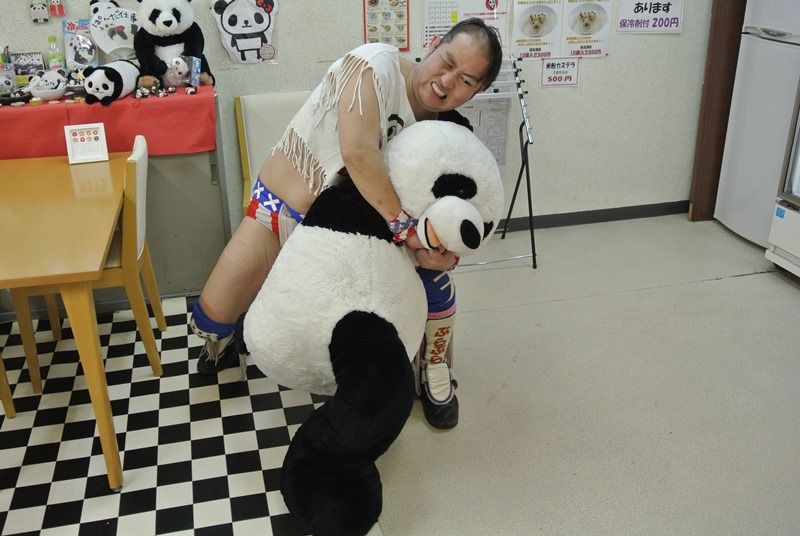 ↑ そしてパンダ店長はコブラツイストというプロレスの技をかけられていました
