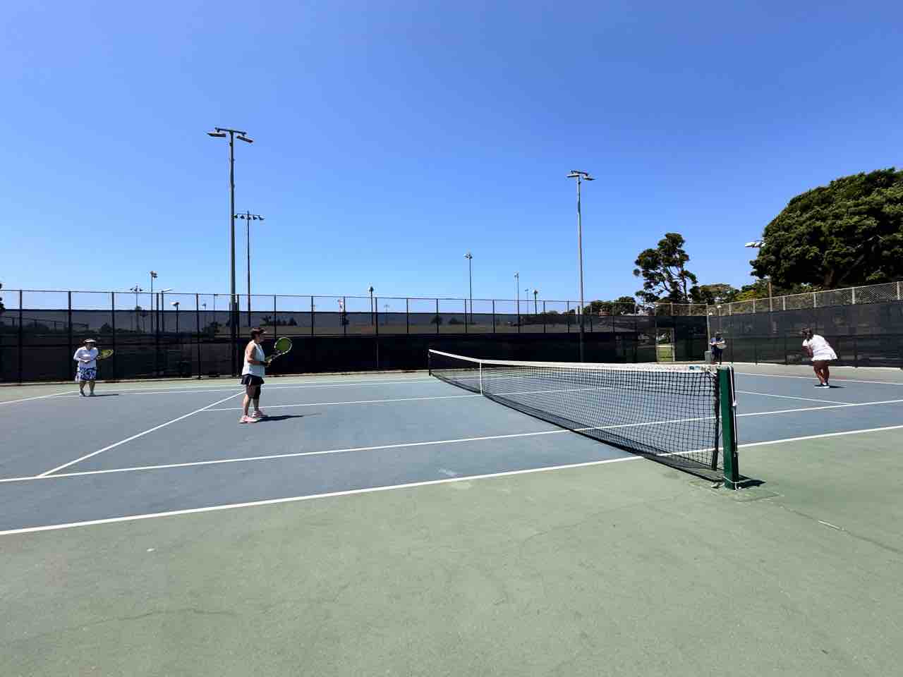 まず、テニスコートを借りて、テニスとピックルボールをしました。