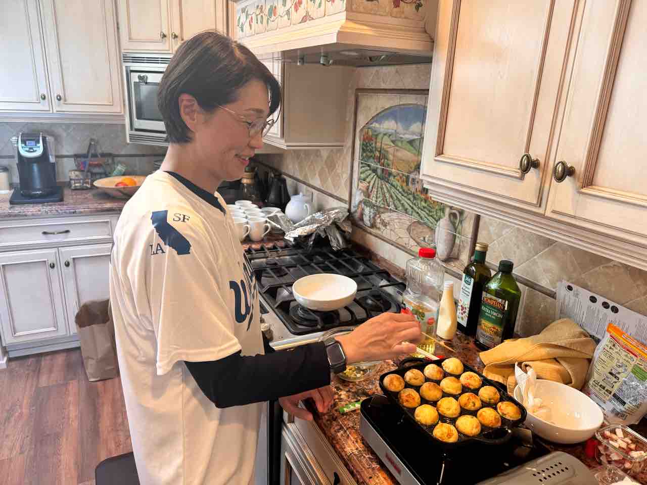 日本から来た私たちはたこ焼きを振舞いました