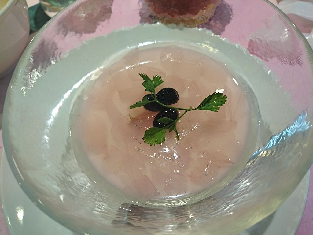 フォアグアの茶碗蒸しの上に、とろみのあるスープがかけられていました。