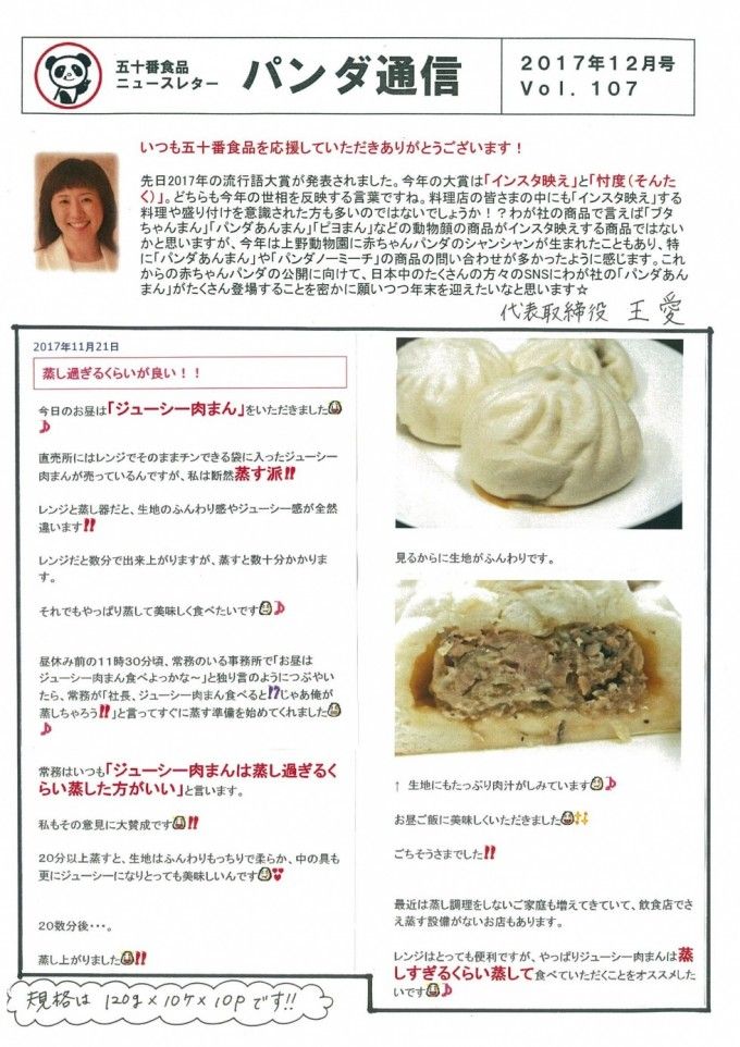 五十番食品で毎月発行しているニュースレター「パンダ通信」の12月号が出来上がりました