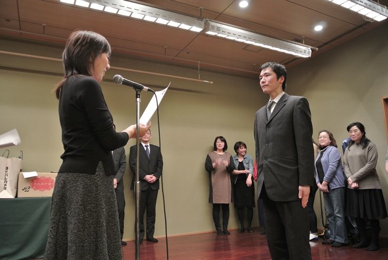 そして今日の朝礼で、忘年会に参加できなかった3名の方の表彰を行いました。