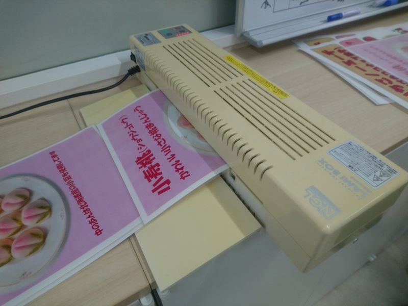 今日は朝から営業のH主任が何かをラミネートをしていました。