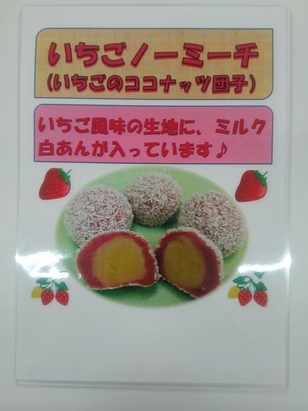春にぴったりのデザート「いちごノーミーチ」と「小寿桃」の販促POPを作っていました