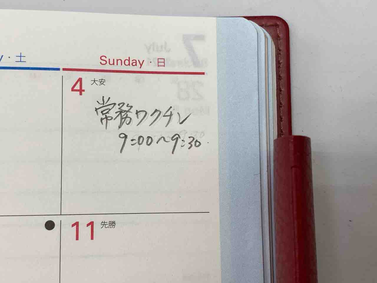 今回はワクチン接種という大事な予定なので、いちお私の手帳にも書いておきました