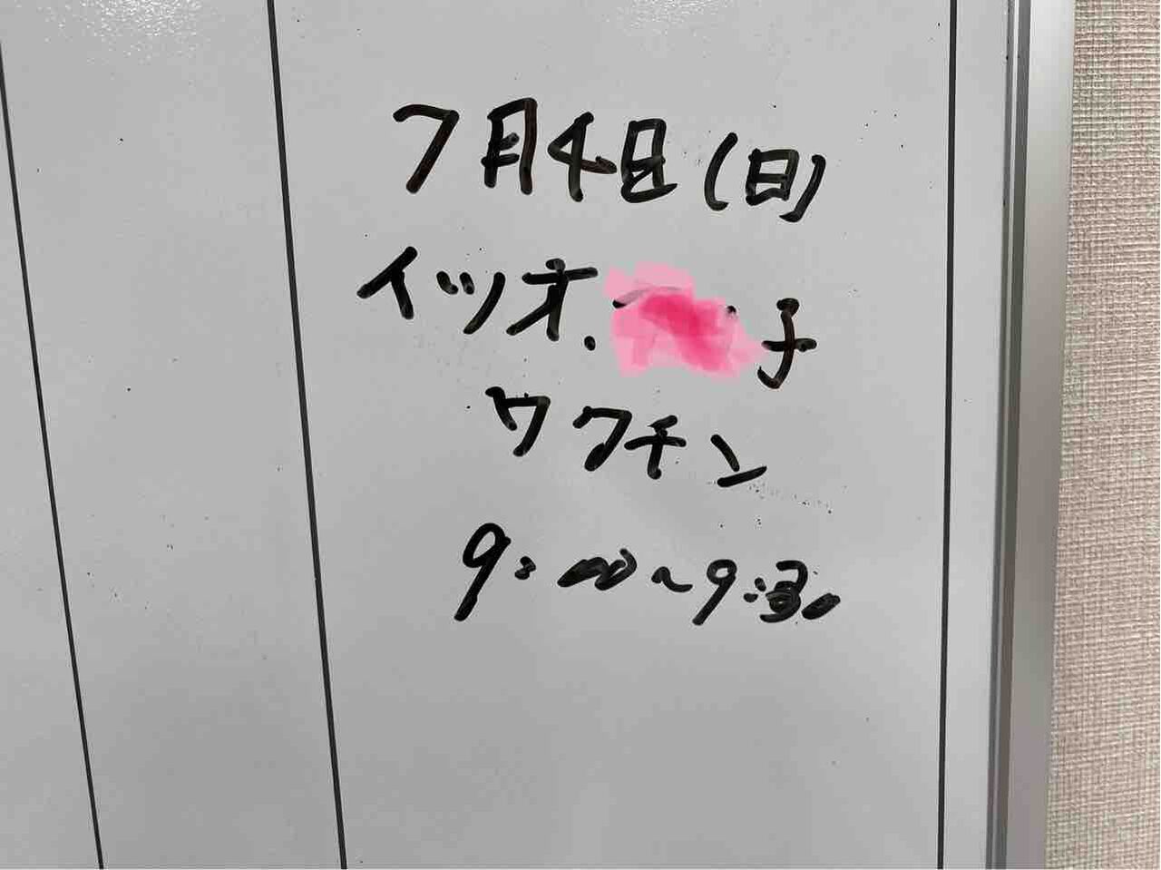 そして常務は本当に事務所のホワイトボードに自分のワクチンの接種日の予定を書き込んでいました