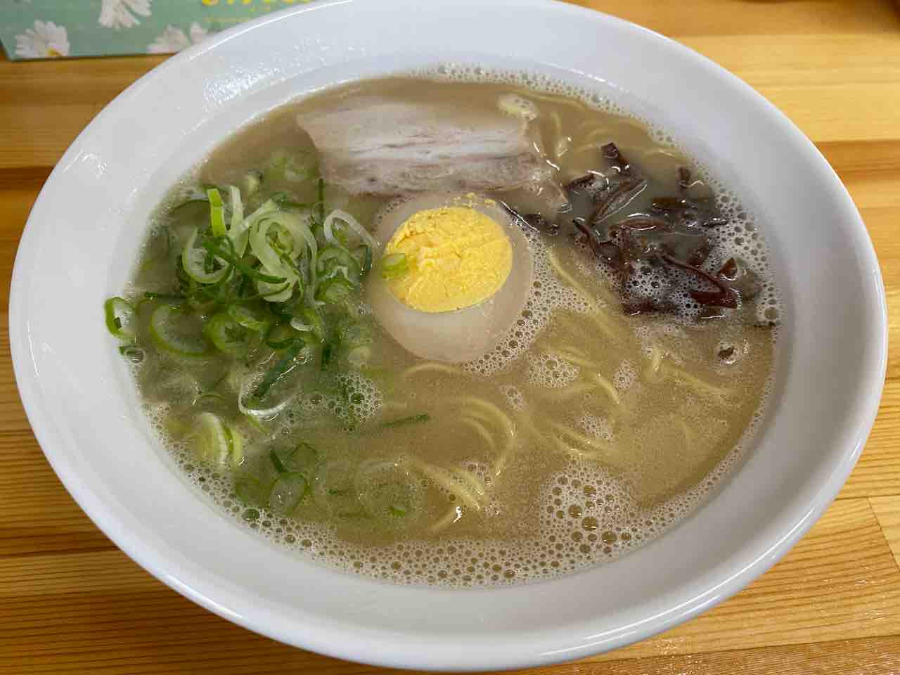 豚骨ラーメンですが、スープは割とあっさりとしていて美味しいです。