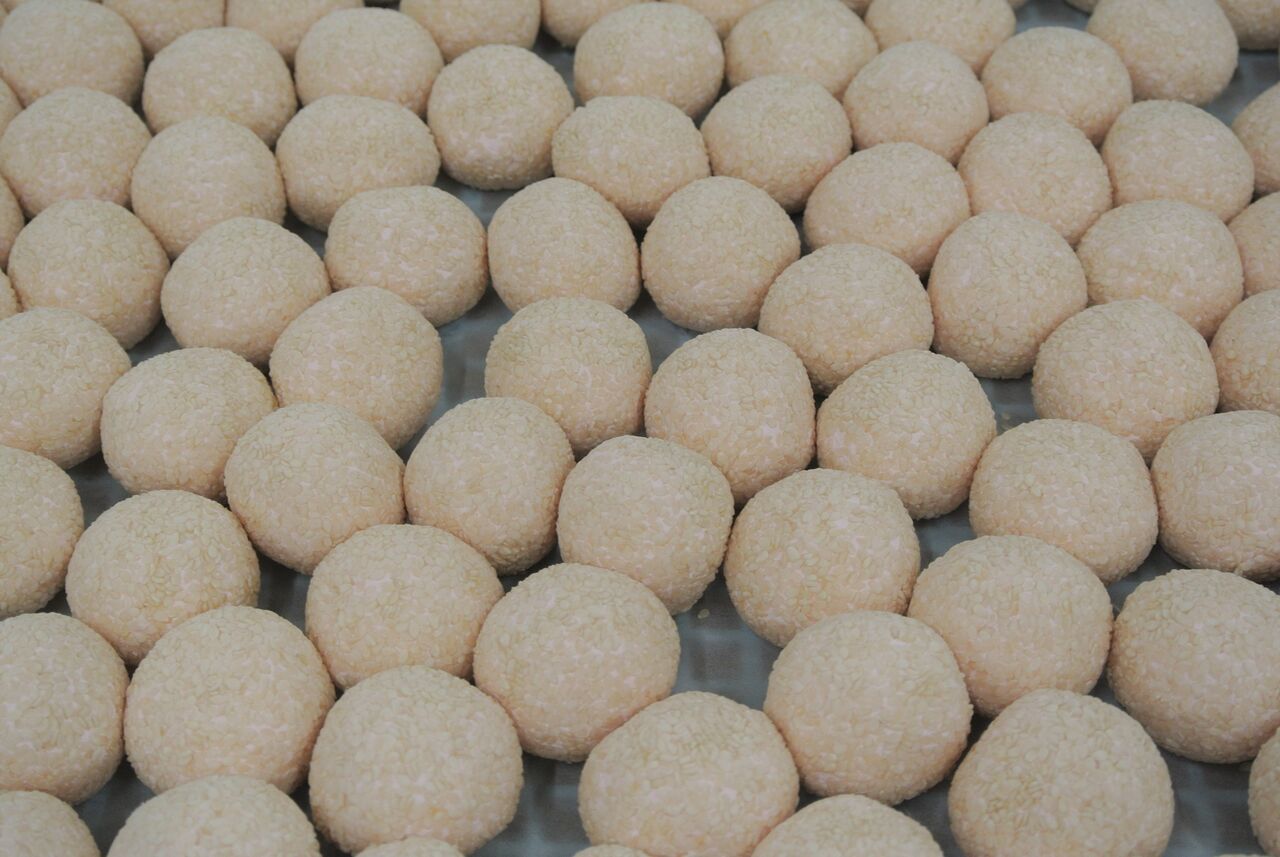 包装室に行くと、「芝麻球(桜あん)」の袋詰め作業を行っていました。