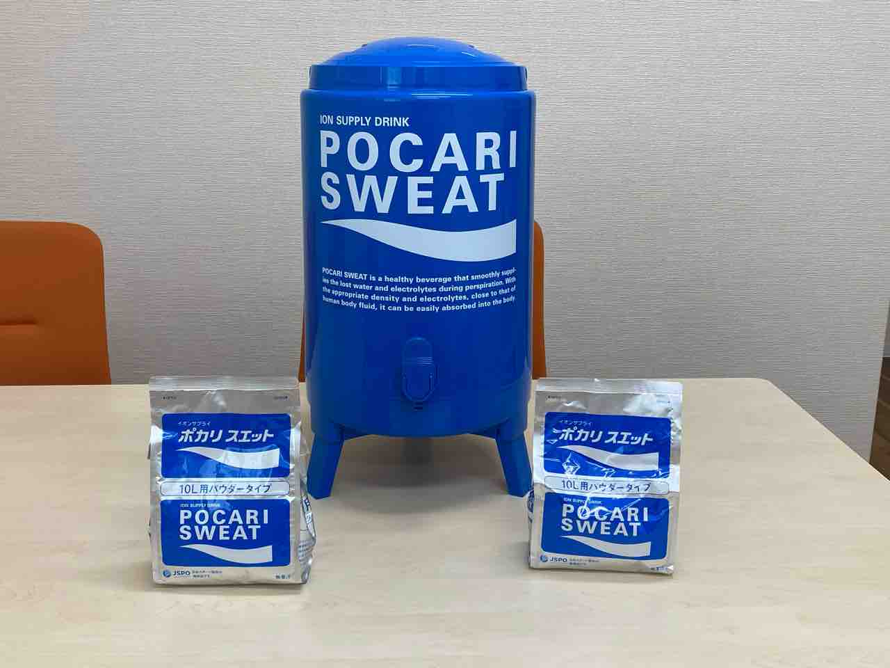 お茶は随時飲めるようにしていますが、汗をかいた時にはポカリスエットの方がいいかなと思い、試しに置いてみることにしました。