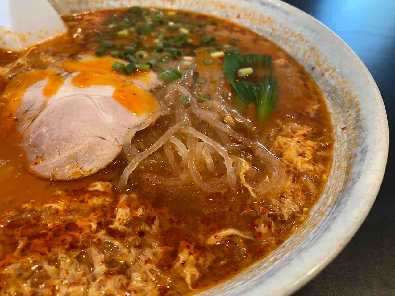 ↑ 麺が普通の中華麺ではなく、透明なコシのある麺です。