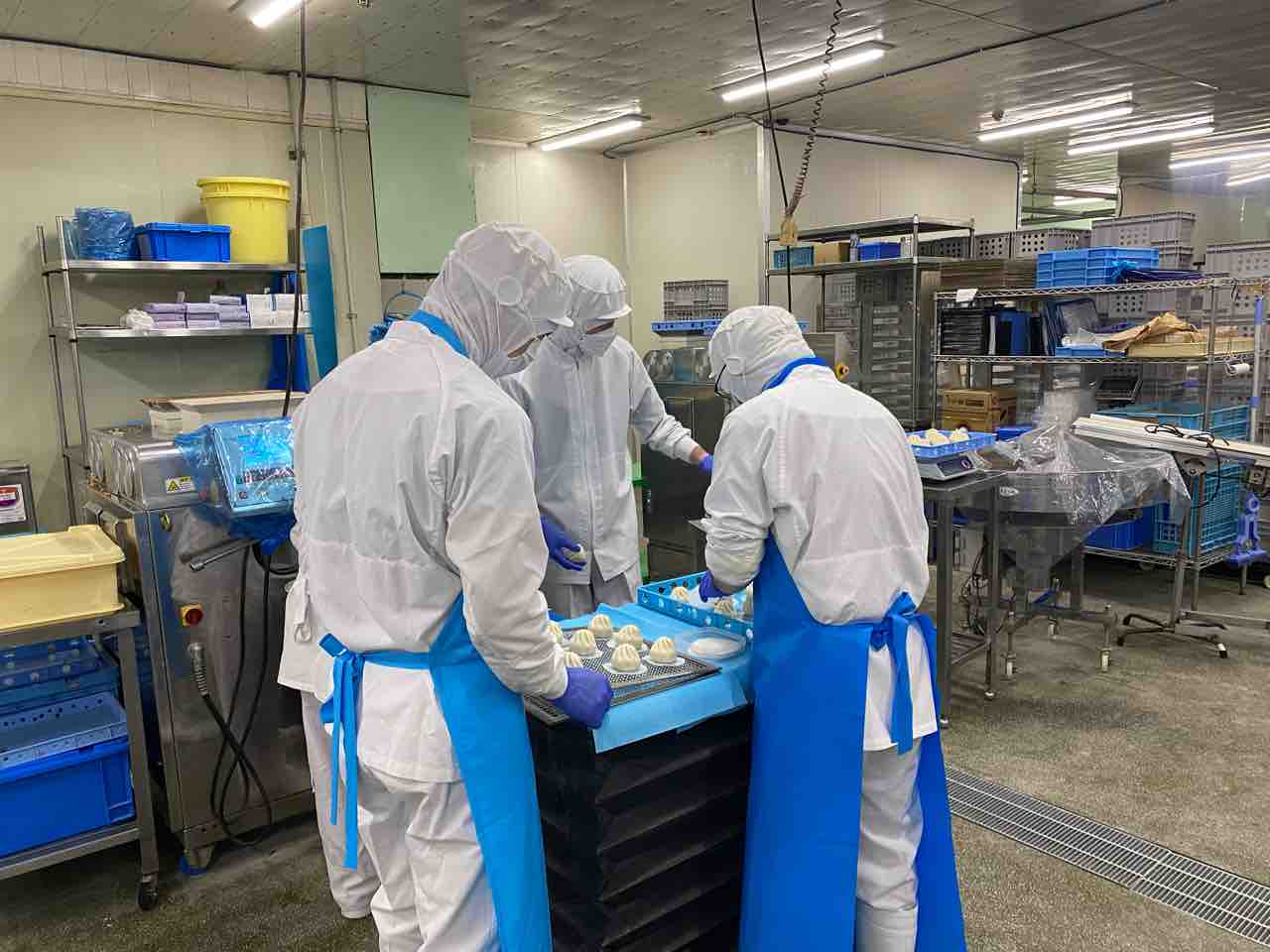 先週の土曜日、工場では機械づくりの肉まんを製造していましたが、お世話係のEくんがHくんに付きっ切りで仕事を教えていました。