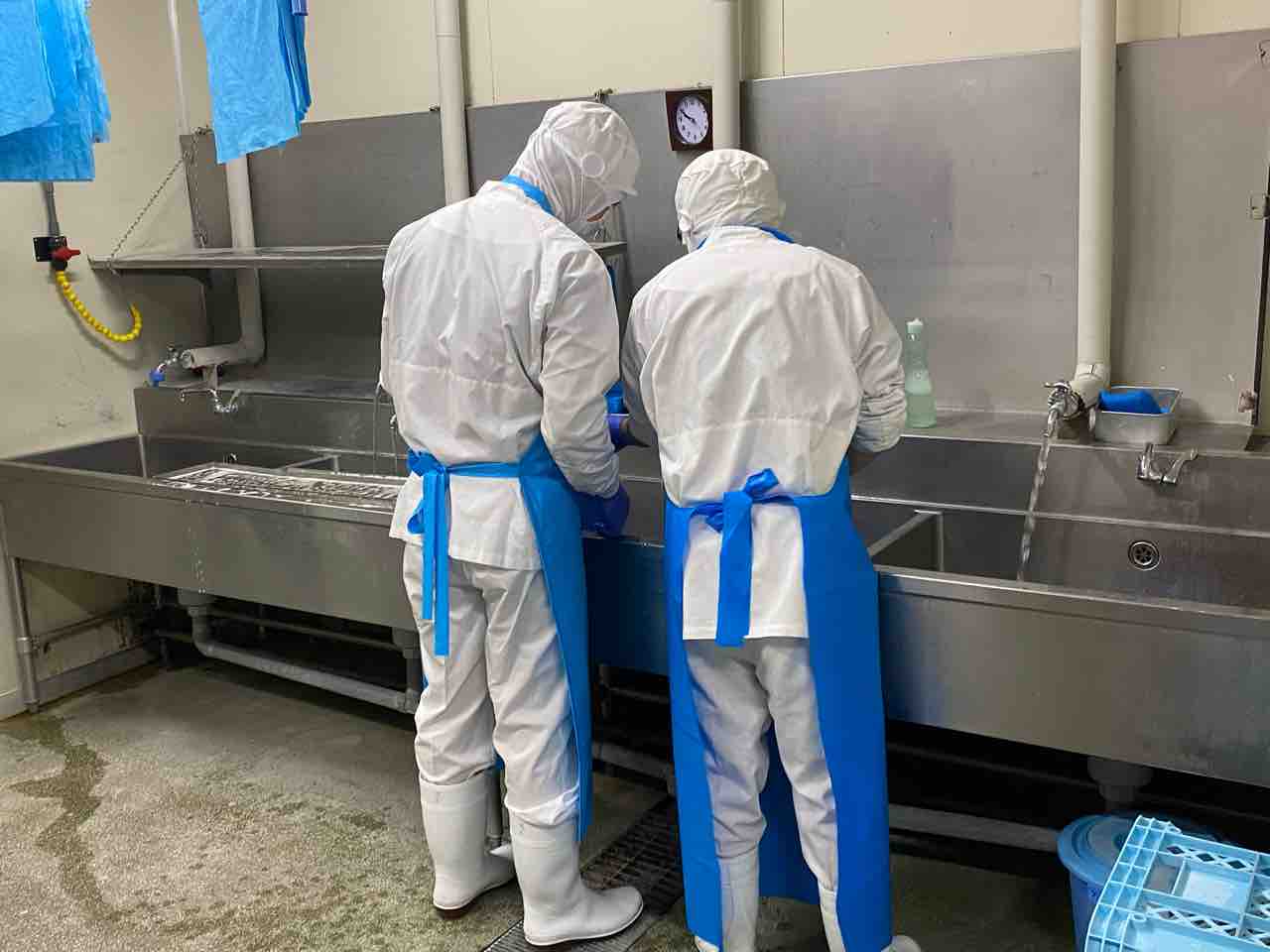 機械の部品の洗い方も、Eくんが自分でやってみせながら教えていました。