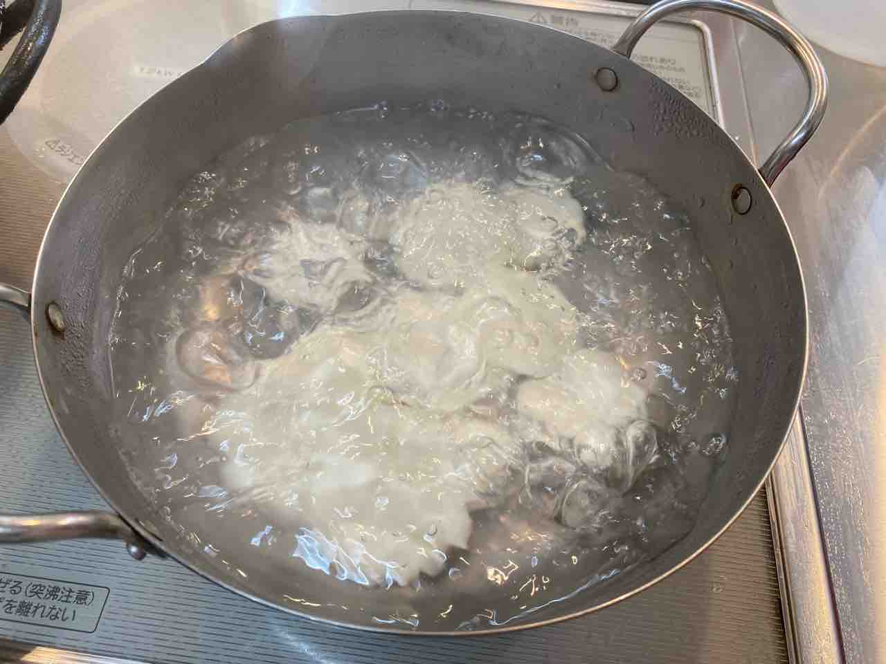まずは皮の食感を確認しようと、皮だけを茹でて食べてみることにしました。