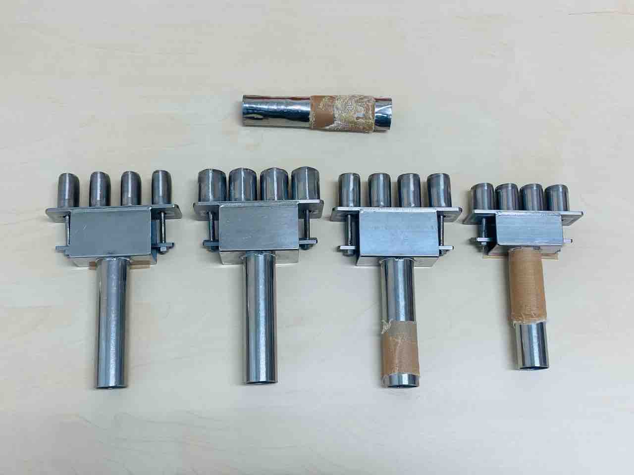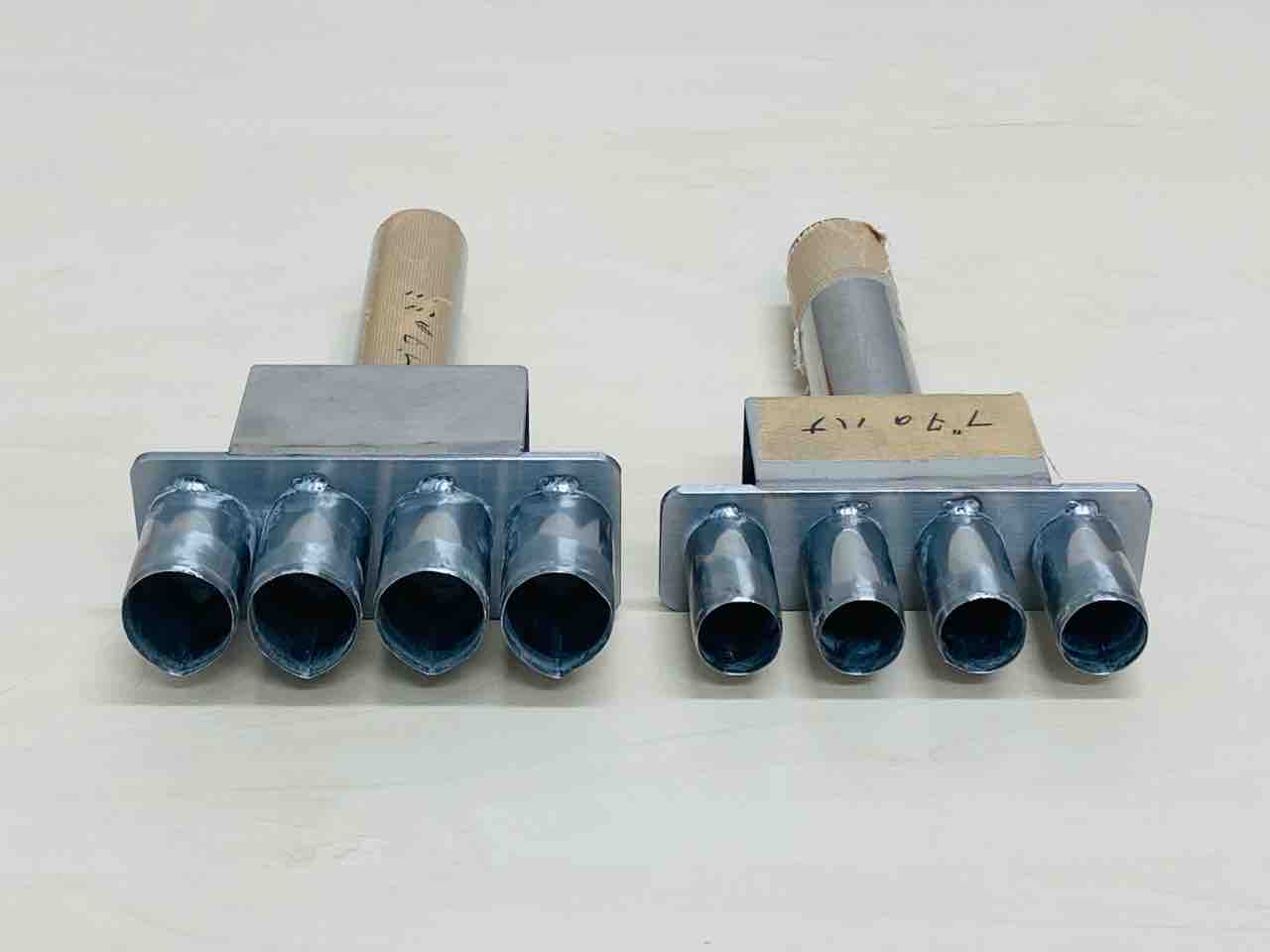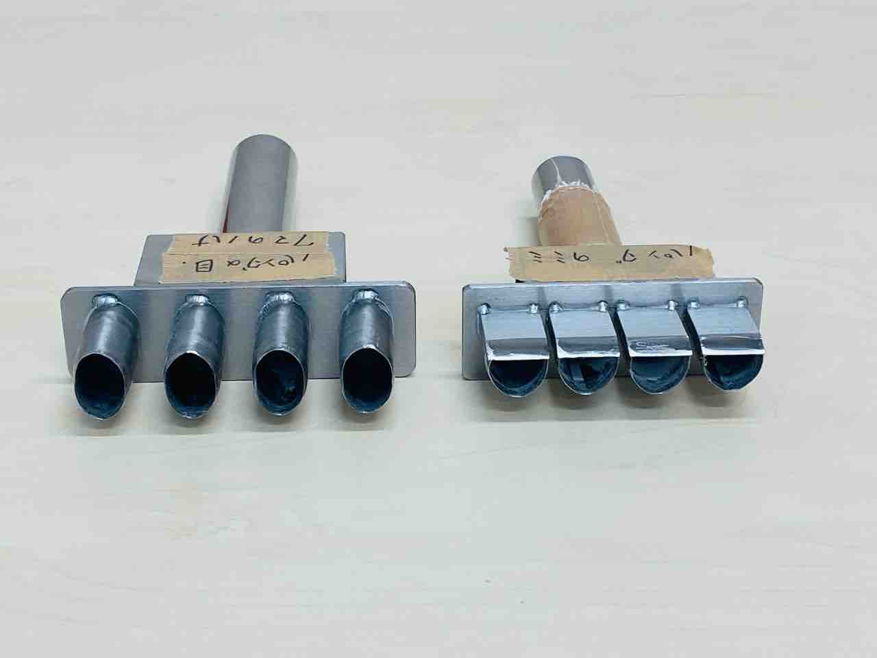常務がステンレスの丸い筒の形を変えて作ってくれました