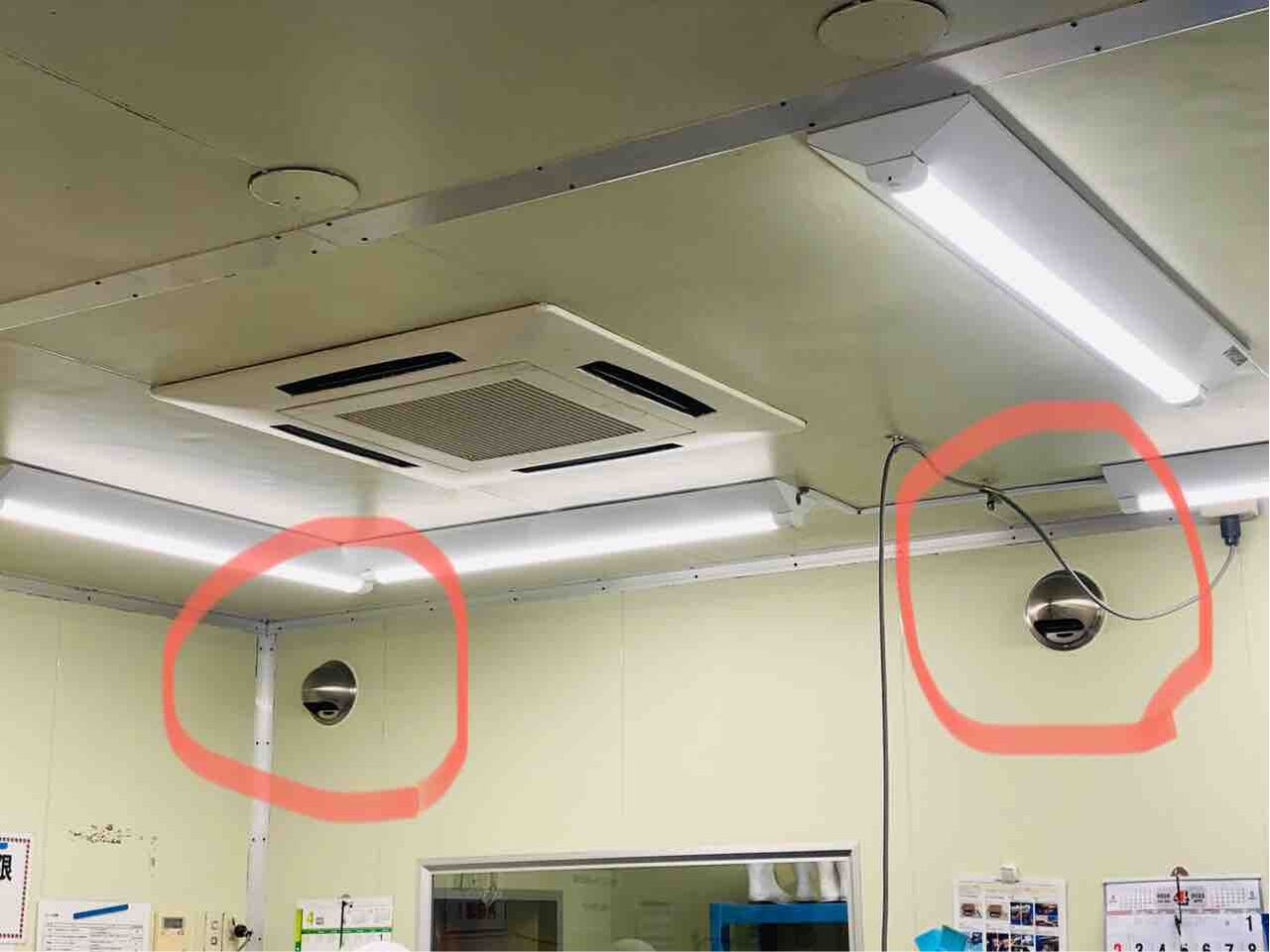 同じような機械を先月工場の別の場所にもつけましたが(こちら)、これは「除湿機」です