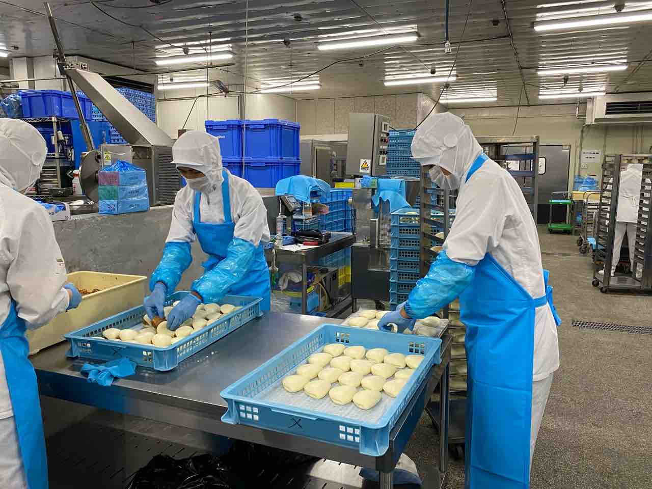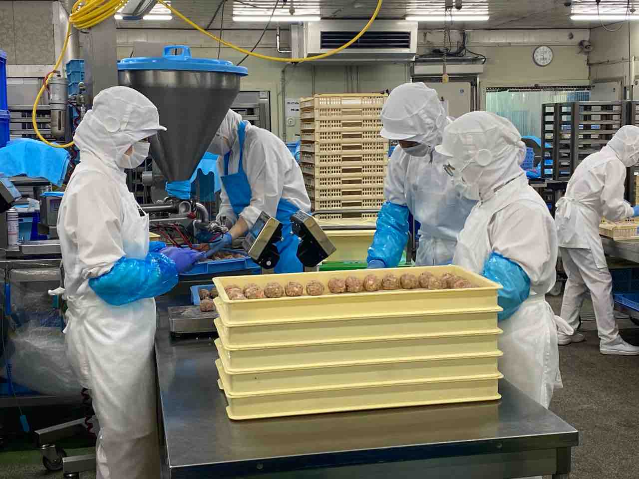 トノさんは、パートさんたちと肉まんの具の計量をしていました。