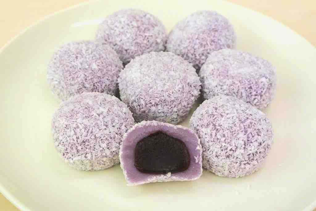紫イモペーストを練り込んだ生地の中に、中華こしあんが入っています。