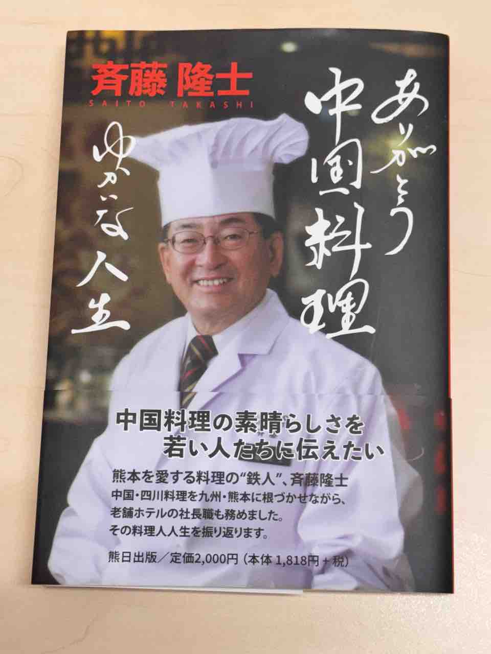 斉藤隆士氏著の「ありがとう中国料理 ゆかいな人生」。