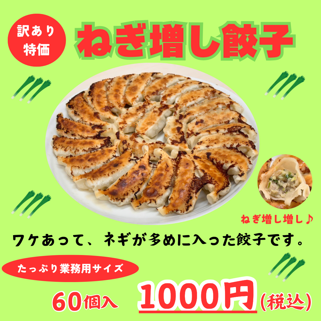 ワケあって、ネギが多めに入った餃子です。(訳ありのワケはこちら)