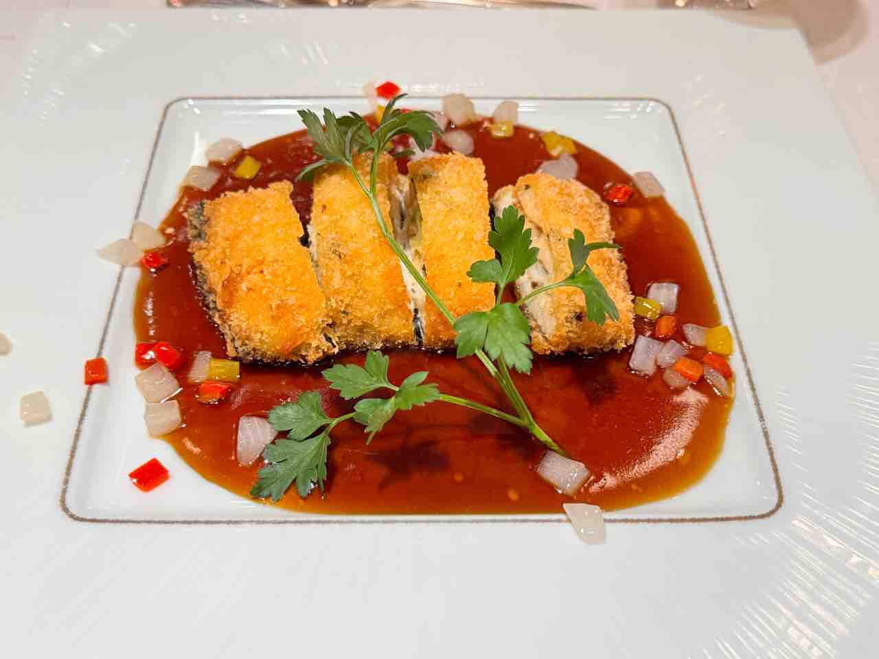 ◆鰻と海老のミンチのカツレツ 黒酢ソース