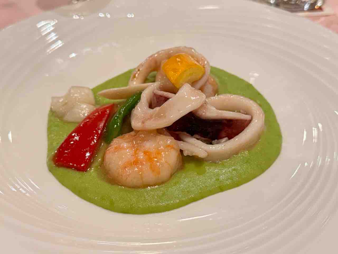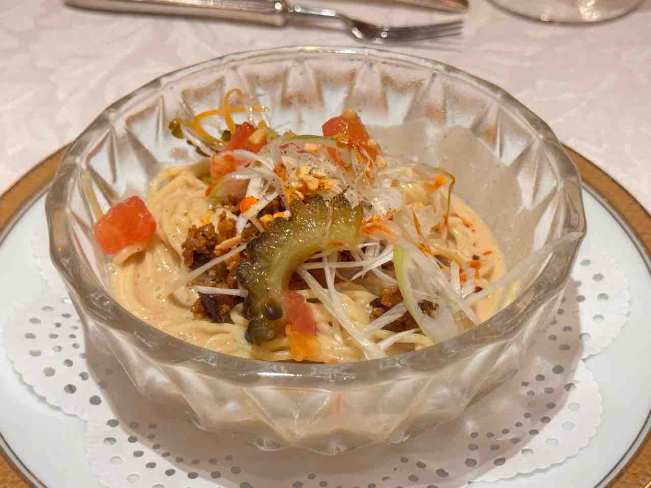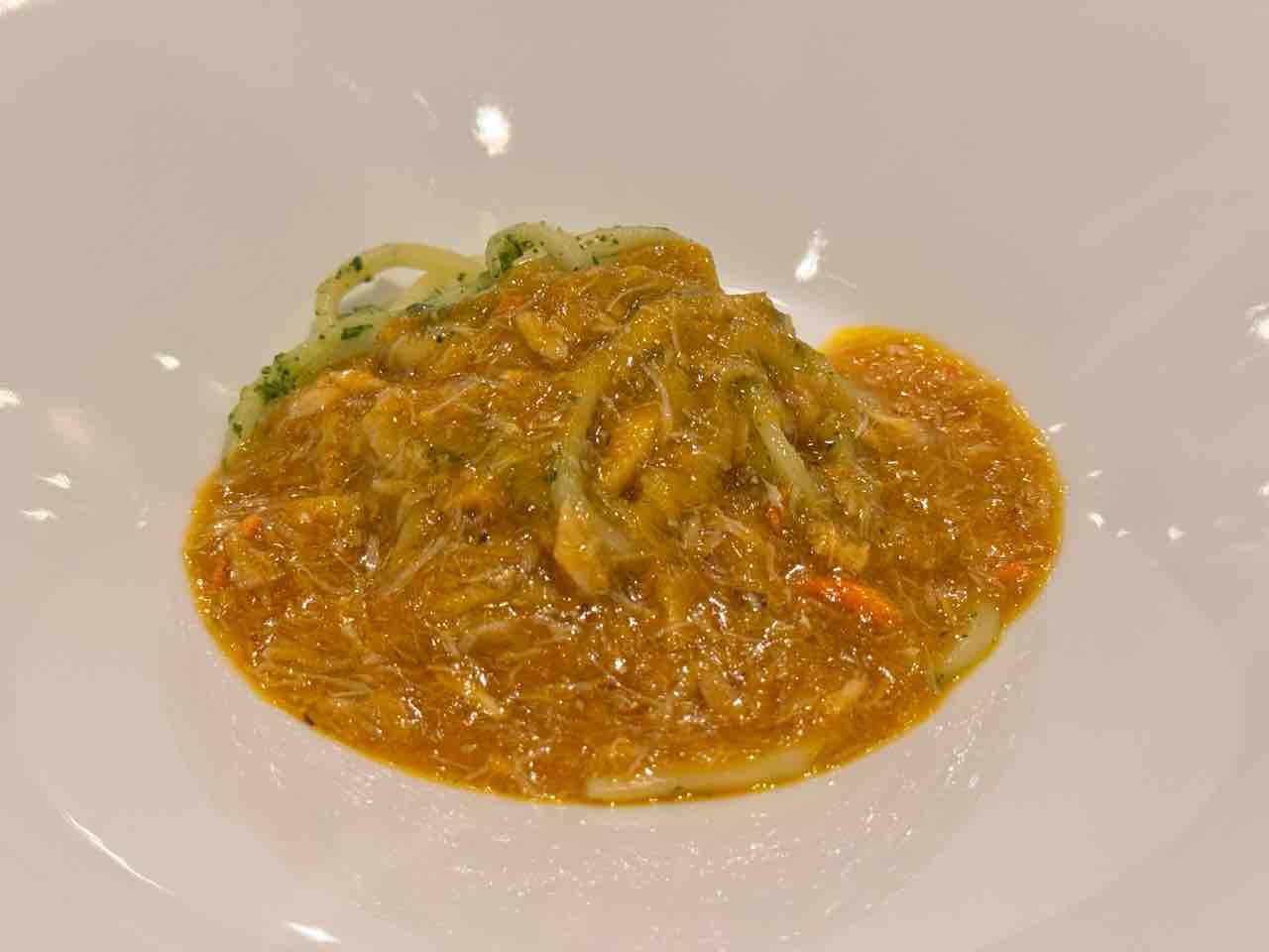 ◆蟹肉とフカヒレの翡翠冷製スープ