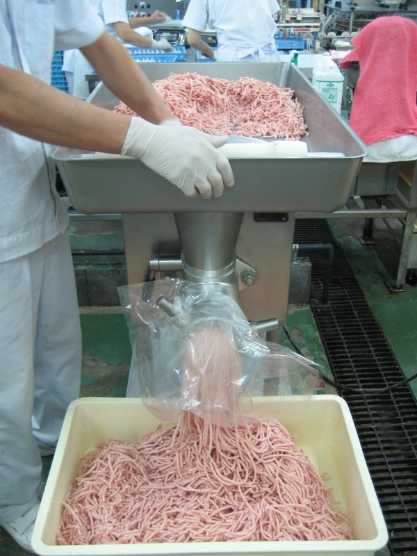 当社も創業当初はミンチを買って使っていたそうですが、ミンチの中に異物が入っていたりしたこともあって、25年前に自社でミンチを引く方針に切り替えてからずっとそれを守っています。