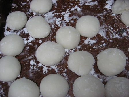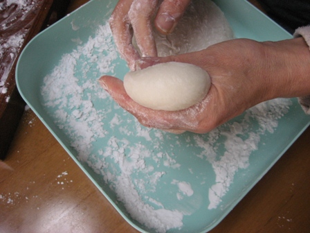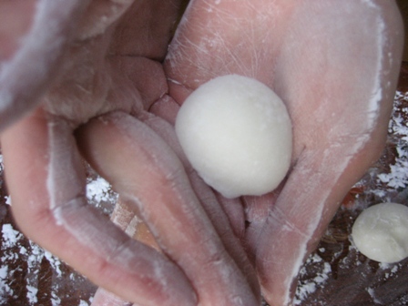 ↑ 母と姉が手際よくお餅を丸めていきました。